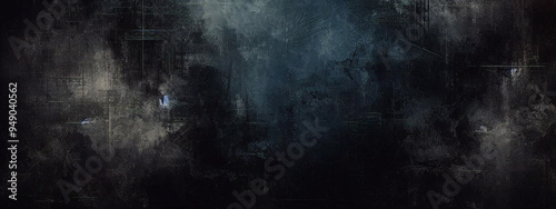Black dark azure cobalt sapphire blue abstract background. Color gradient. Geometric shape. Wave, wavy curved line. Rough grunge grain noise. Light neon metallic shine shimmer bright. Design