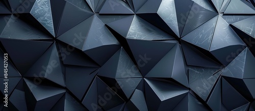 Black dark navy blue silver abstract pattern background. Geometric shape. Line triangle angle fold polygon diamond 3D Color gradient .