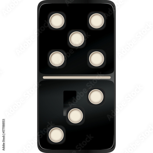 Black Domino Tile With Five and Two Dots Isolated On White Background With No Shadow