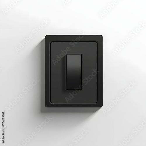 Black electrical switch on a white wall.