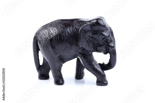 Black elephant like wooden carving with white ivory. Stand on white background, Isolated, Art Model Thai Crafts, For decoration Like in the spa.