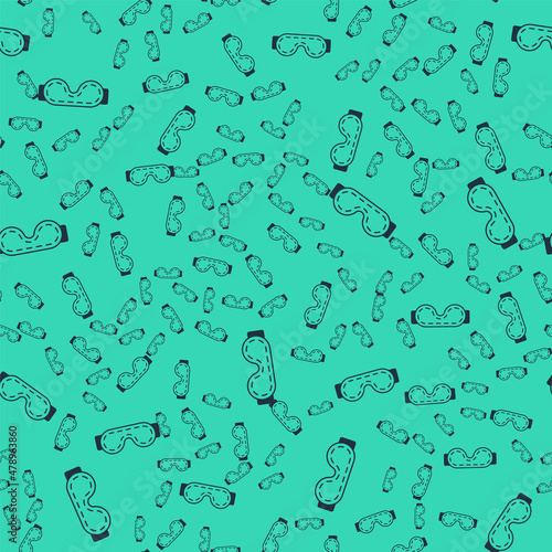 Black Eye sleep mask icon isolated seamless pattern on green background. Sleeping mask. Vector