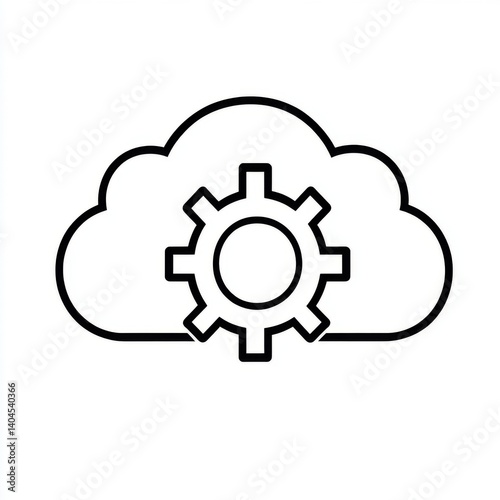 Black flat vector icon of cloud with gear wheel, cloud settings isolated on white background