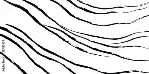 Black flowing wave lines on white and transparent background. Wave line art pattern white backgrounds drawing. Black and white waves. Modern vector background. Stylish texture with wavy stripes lines.