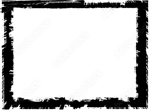 Black frame hand drawn on white background. Paint strokes with a dry brush