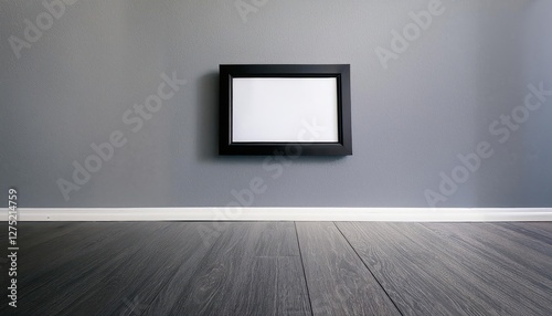 Black Frame on Wall with Dramatic Forced Perspective, Depicting a Rustic Interior Enhanced by Rich Textures and High Contrast in a Monochromatic Palette, Exuding a Timeless Elegance.