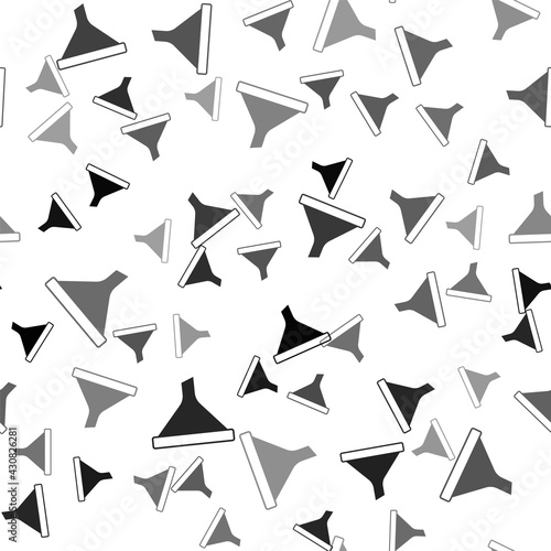 Black Funnel or filter icon isolated seamless pattern on white background. Vector