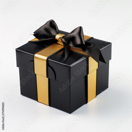 black gift box with gold bow on white background сreated with Generative Ai
