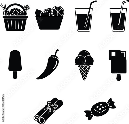 Black Glyph Food Icons: Sweet & Spicy Treats