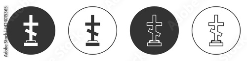 Black Grave with cross icon isolated on white background. Circle button. Vector