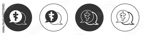 Black Grave with cross icon isolated on white background. Circle button. Vector