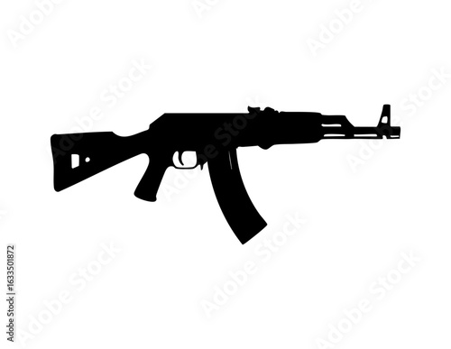 Black gun silhouette side view isolated, showing pistol profile with trigger and barrel, commonly used for security, law enforcement, or firearm safety concepts.