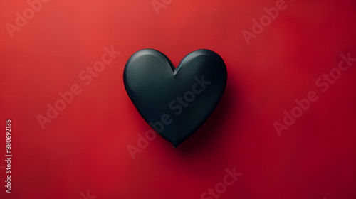 Black Heart on Red Background Symbolizing Contrast and Emotions