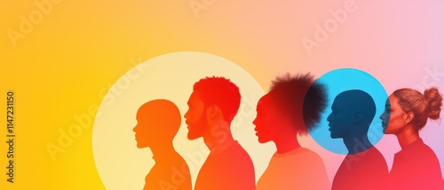 Black History Month abstract art backgrounds concept. Silhouettes of diverse individuals against a colorful gradient background, representing unity and diversity.