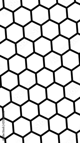 Black honeycomb on a white background. Isometric geometry. Vertical image orientation. 3D illustration