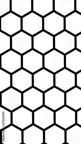Black honeycomb on a white background. Perspective view on polygon look like honeycomb. Isometric geometry. Vertical image orientation. 3D illustration