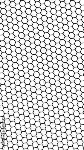 Black honeycomb on a white background. Perspective view on polygon look like honeycomb. Isometric geometry. Vertical image orientation. 3D illustration