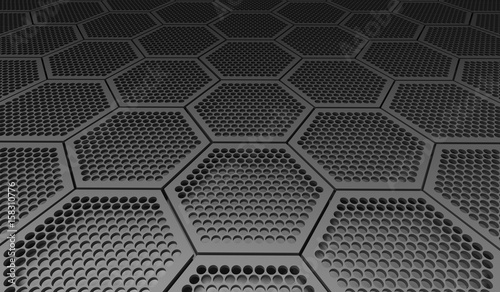black honeycomb pattern, 3D rendering.