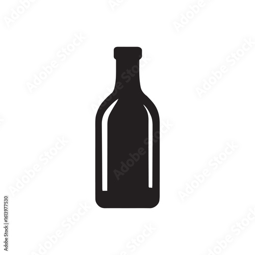 Black Icon of Wine Bottle Design, Minimalist Beverage Illustration, Single Object