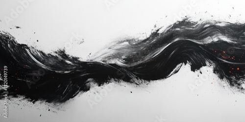 Black Ink Brushstroke on White Canvas Minimalistic Abstract Art