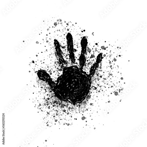 black ink handprint with ink splatter