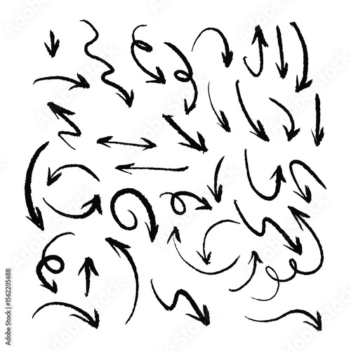 Black ink sketch of varied arrows pointing in different directions on a white background