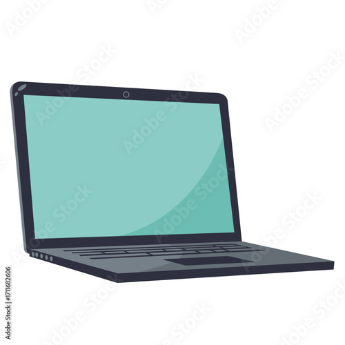 Black laptop with teal screen, computer device illustration perfect for work or education themes.