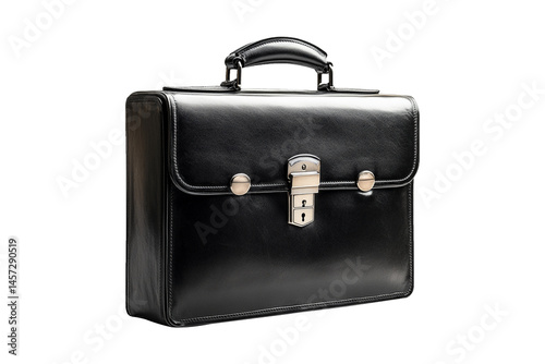 Black Leather Briefcase With Lock And Handle isolated on transparent background.