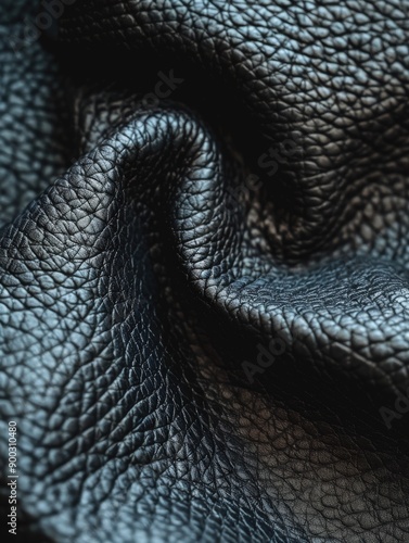 Black Leather Material Close-Up With Detailed Texture and Grain