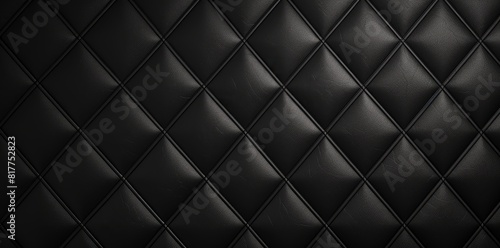 Black leather texture with diamond pattern for background , Black quilted leather surface with diagonal stitching.