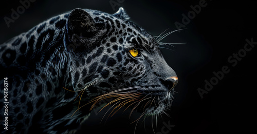 Black leopard with yellow eyes in the dark