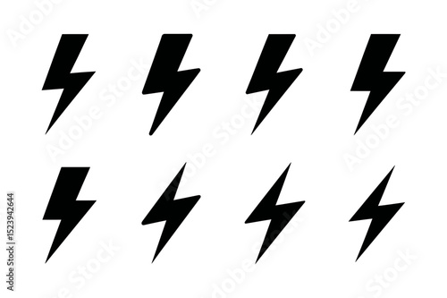 Black lightning bolt vector icon set illustration