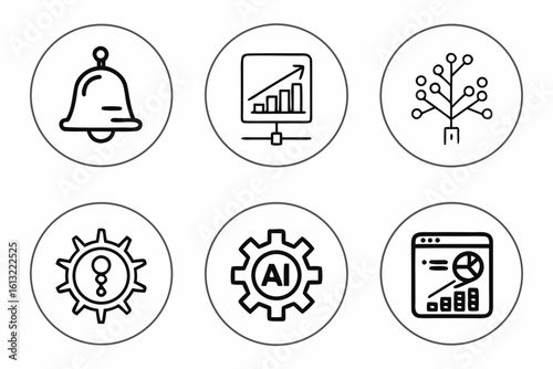 Black Line AI Interface Icons – Minimal Tech Vector Illustration Set