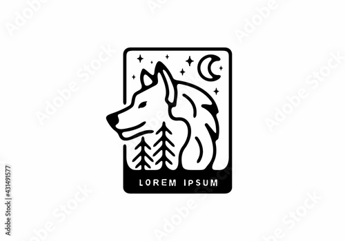 Black line art illustration of wild wolf in unique rectangle shape