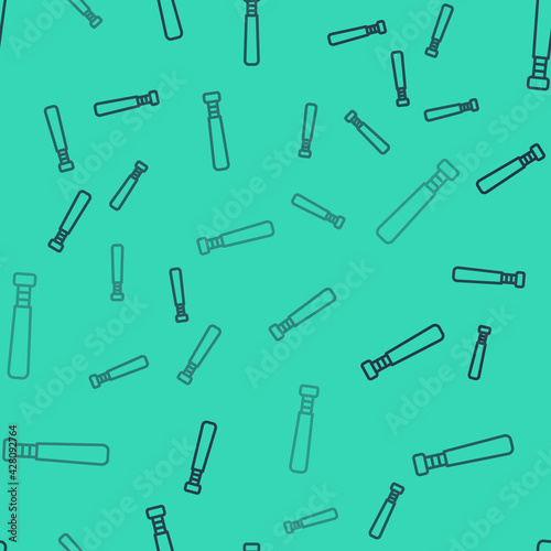 Black line Baseball bat icon isolated seamless pattern on green background. Vector
