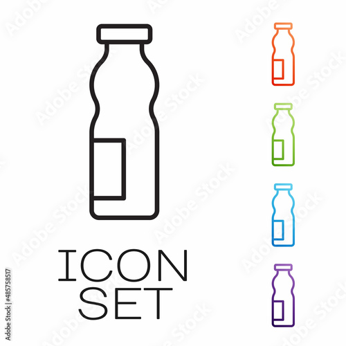 Black line Drinking yogurt in bottle icon isolated on white background. Set icons colorful. Vector