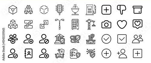 Black Line Icons Bundle 16 User Interface Elements Set