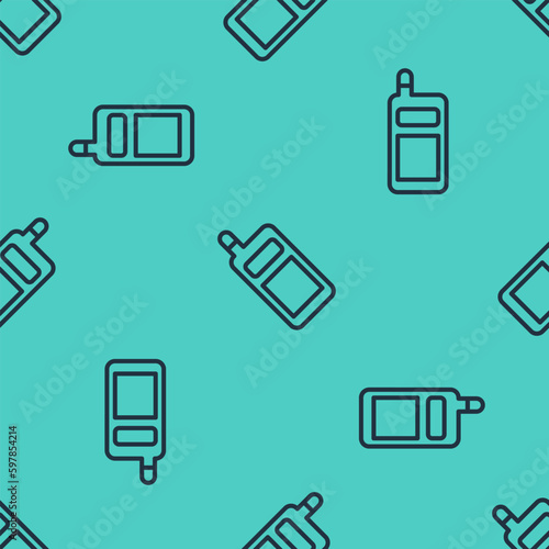 Black line Smartphone, mobile phone icon isolated seamless pattern on green background. Vector