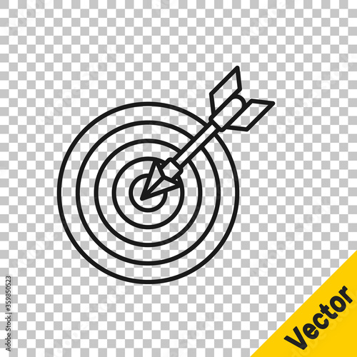 Black line Target with arrow icon isolated on transparent background. Dart board sign. Archery board icon. Dartboard sign. Business goal concept. Vector Illustration.