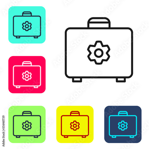 Black line Toolbox icon isolated on white background. Tool box sign. Set icons in color square buttons. Vector Illustration.