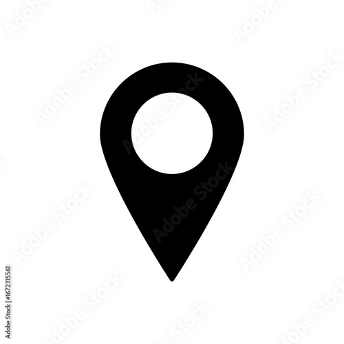 Black location pin icon featuring a clean, minimal design. symbolizes navigation and destination.