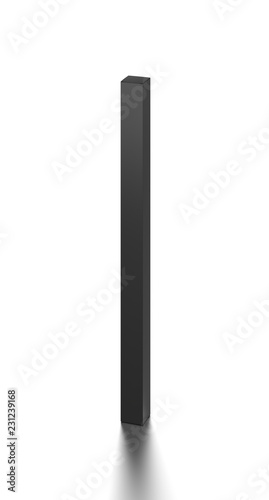 Black long vertical blank box from front top far angle. 3D illustration isolated on white background.