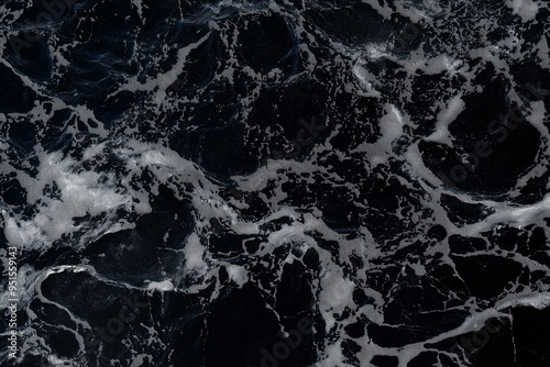 Black marble texture, black water surface with ripples and waves. Black background. AI generation.