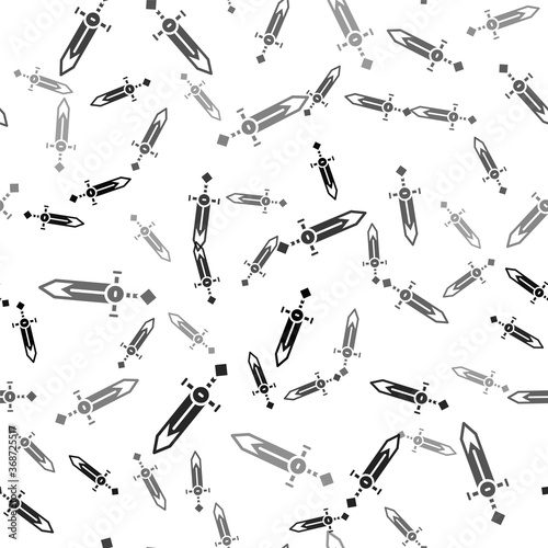 Black Medieval sword icon isolated seamless pattern on white background. Medieval weapon. Vector.