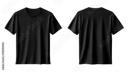 Black men's T-shirt front and back isolated on background, cut out transparent