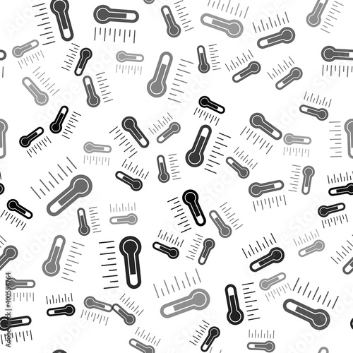 Black Meteorology thermometer measuring icon isolated seamless pattern on white background. Thermometer equipment showing hot or cold weather. Vector.