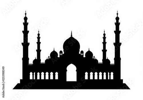 Black Mosque Silhouette on White Background - Islamic Landmark Design