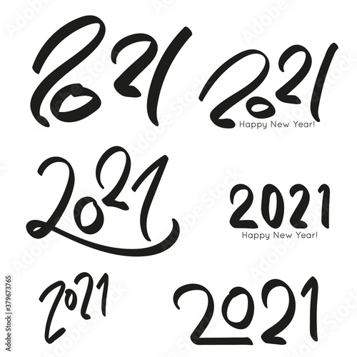 Black number 2021 hand drawn lettering. 2021 Happy New Year vector greeting card.