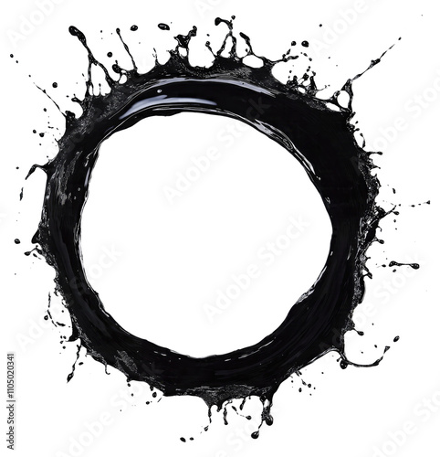 Black oil splash isolated on transparent white background, clipping path