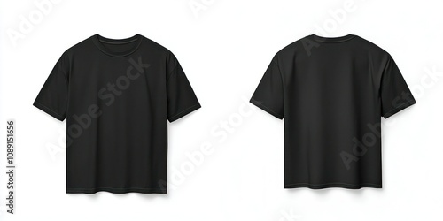 Black oversized T-shirt, front and back view, mockup, isolated on a white background.
